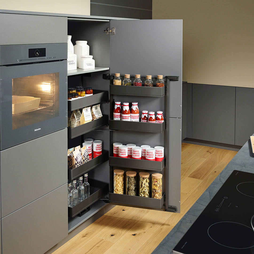 - Vorratsschrank mit Tandembeschlag und 6 Tablarböden an der Türfront